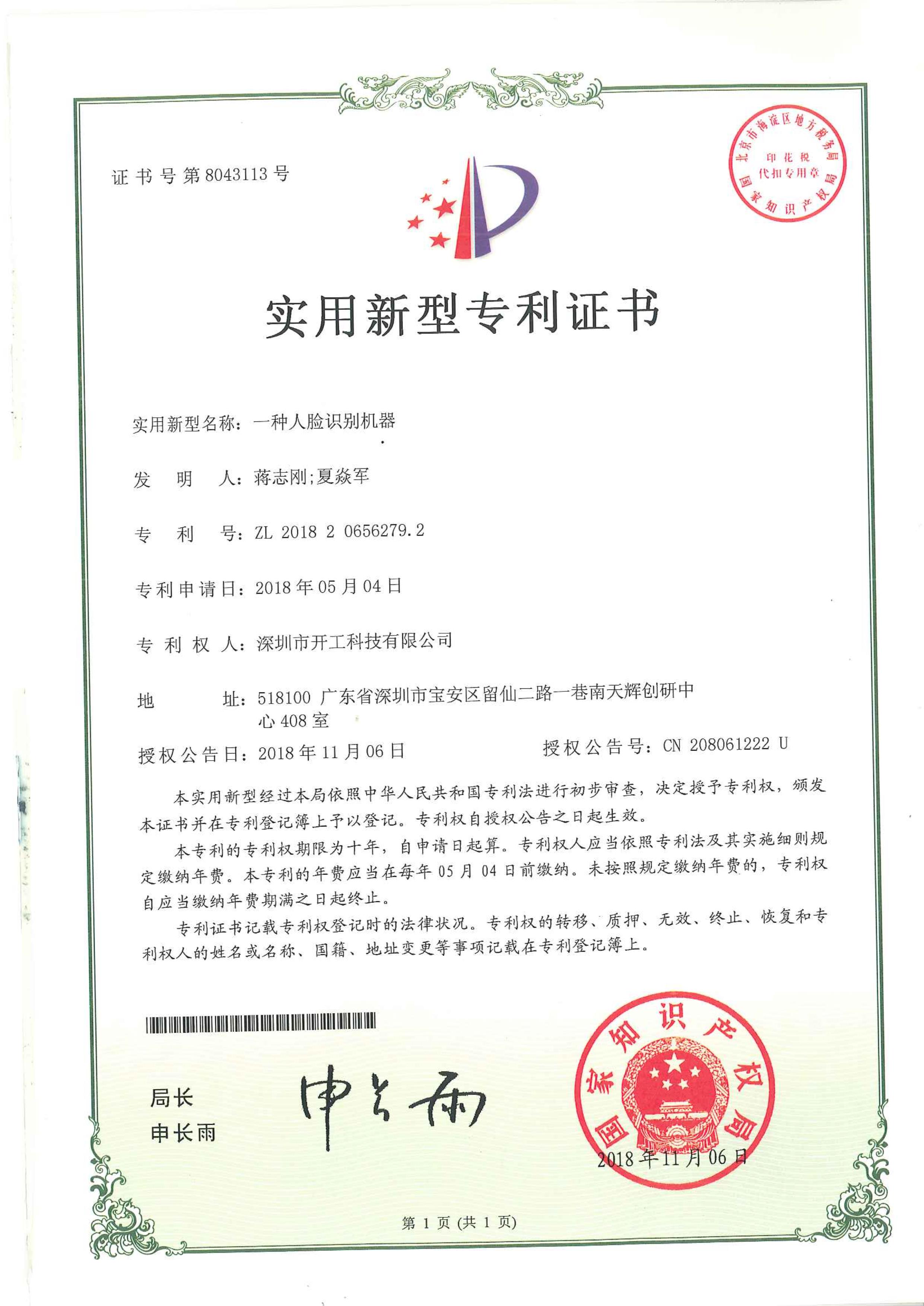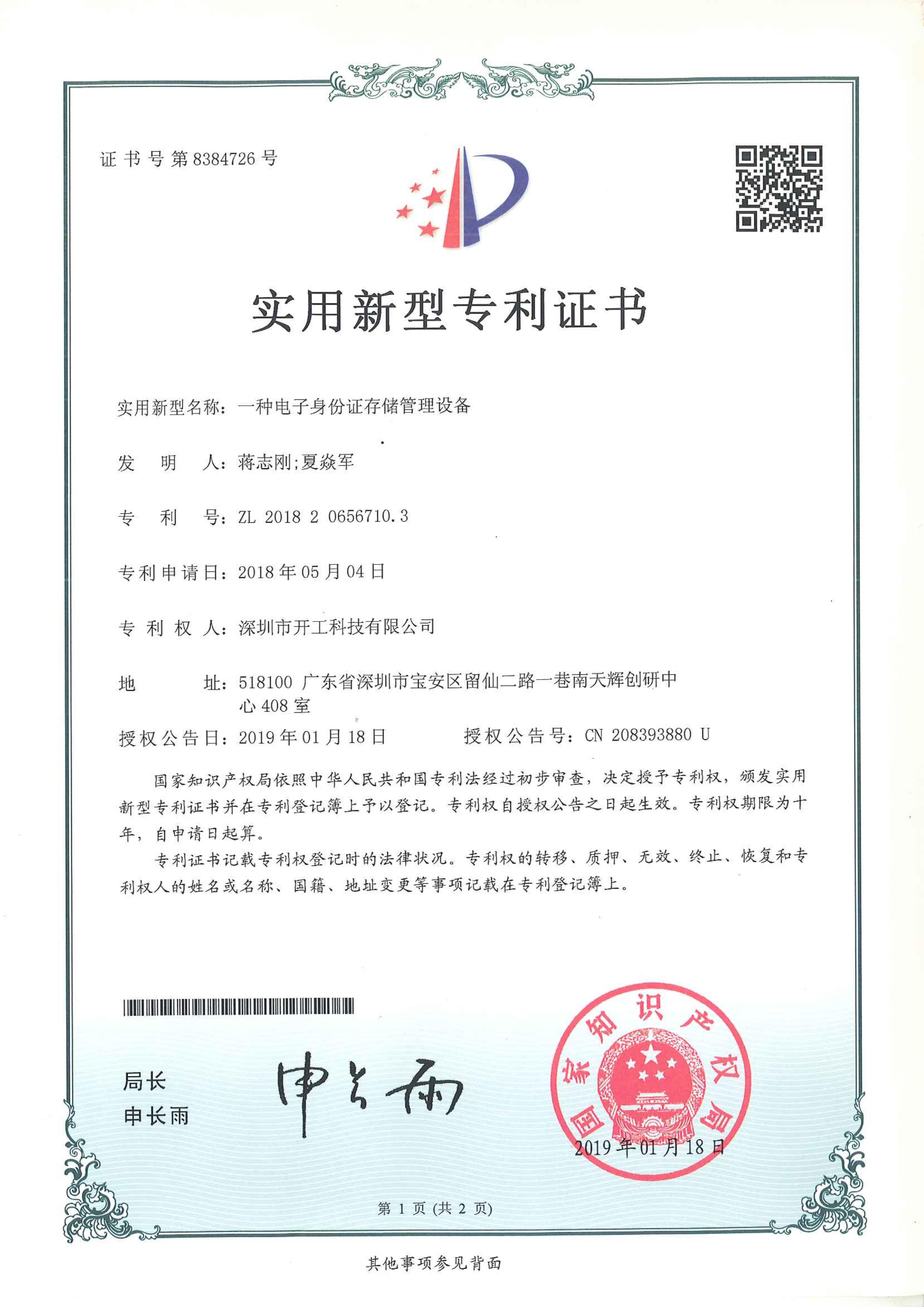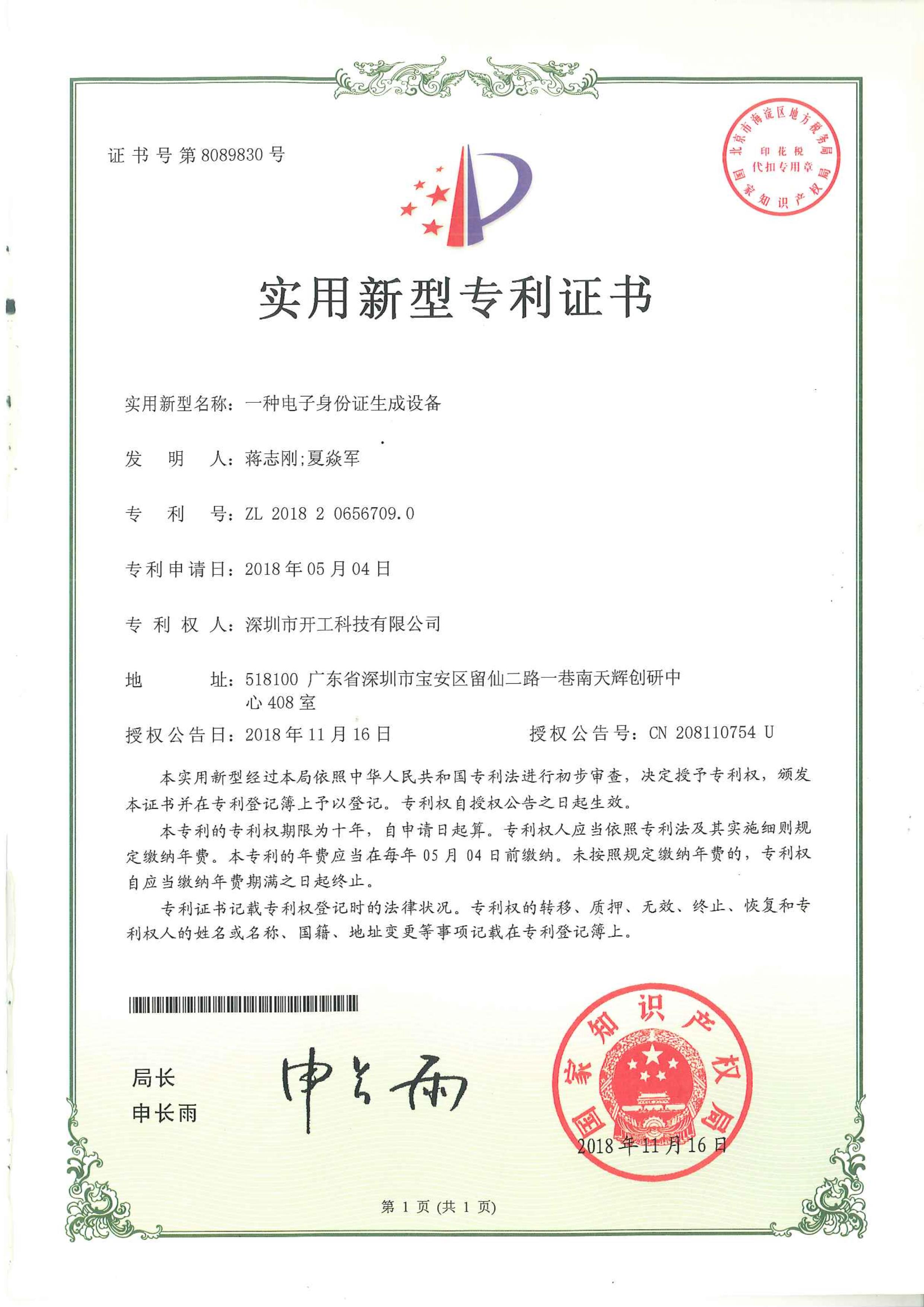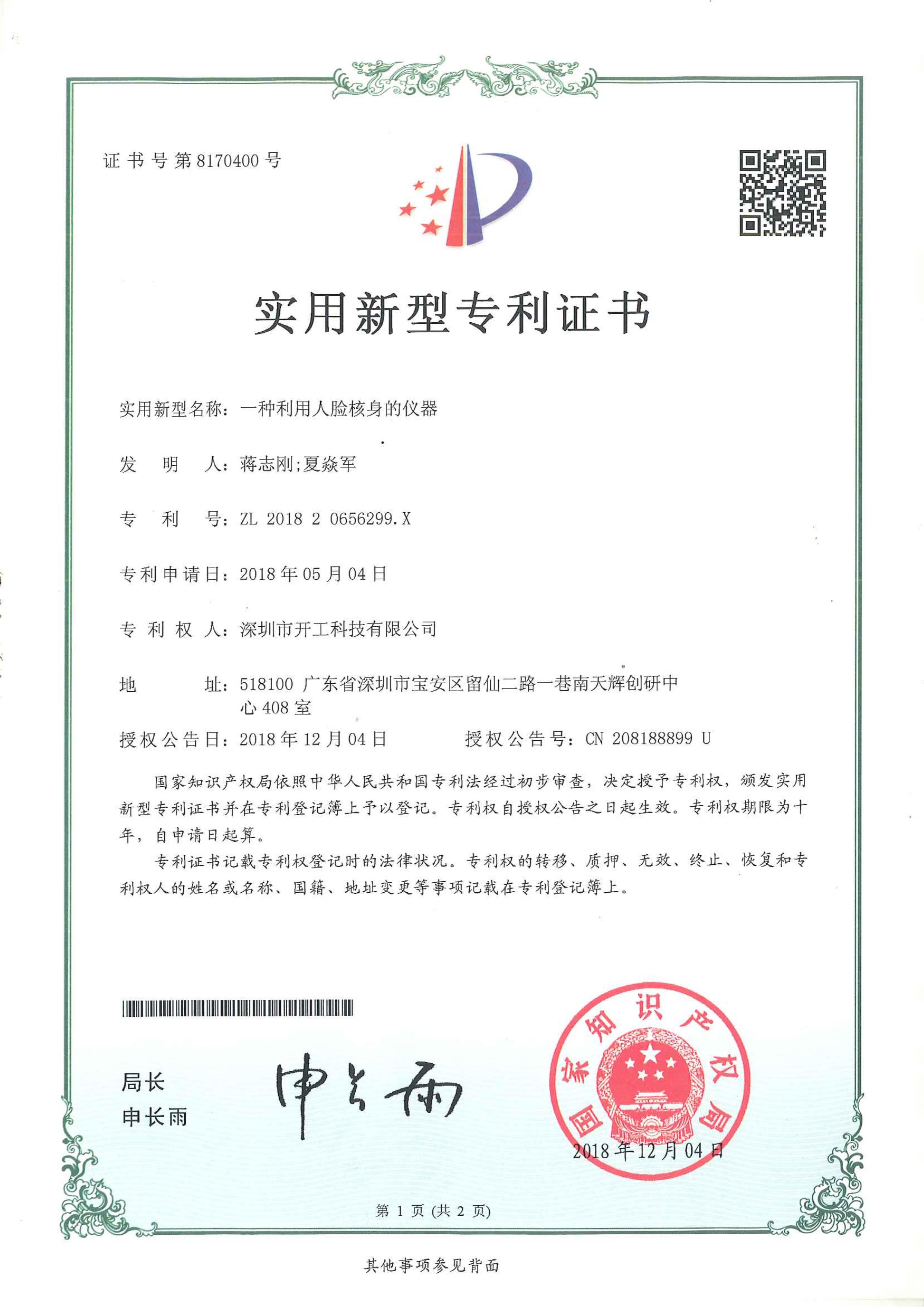 技术资质 签真万确拥有16项发明专利 企业经营资质专业数字认证合作商 软件著作权认证国家版权局颁发证书 智能安防运维综合平台 电子合同电子签章系统 工商财税供应链管理系统 身份验证系统 人脸核身的仪器专利 电子身份证存储管理设备专利 身份识别仪器专利 电子身份证生成设备专利 人脸识别机器专利 SM2算法加密系统 加密设备控制系统 数字证书管理控制软件 电子身份证识别软件 加密的设备控制系统 基于人脸识别的安防软件 互联网智能身份识别控制软件